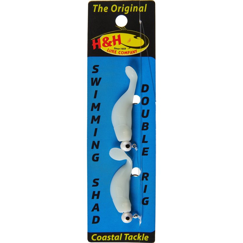With the H&H Lure 1/16 oz Swimming Shad Double Rig in your tackle box, you can help bring home your next catch. The swimming action attracts trout, redfish and flounder, and the rig features a single hook. H&H Lure 1/16 oz Swimming Shad Double Rig Glow, 1/4 Oz - Salt Wtr Sft Plastic at Academy Sports