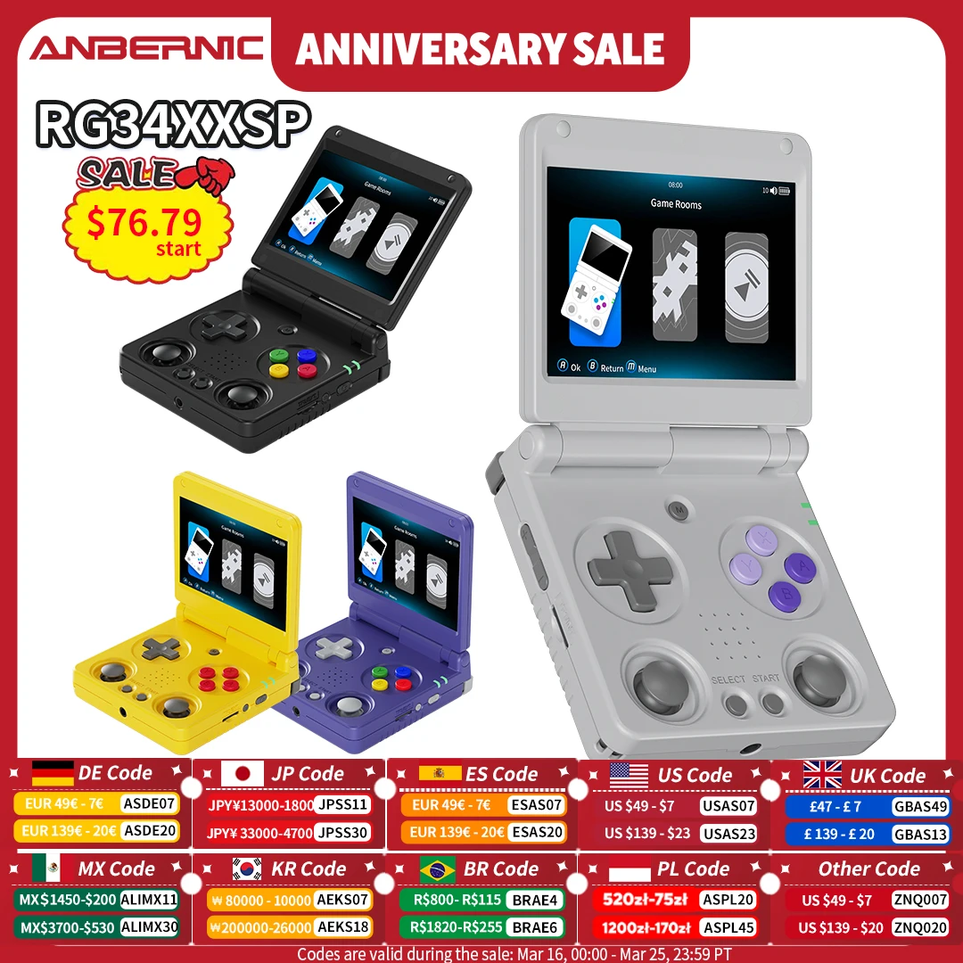 ANBERNIC RG34XXSP Flip Handheld Game Console 3.4'' IPS Screen Linux 64-bit 64G 5000+ Games Support …